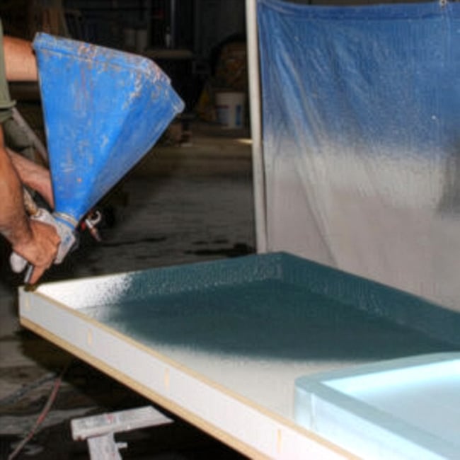 This mix works best within a narrow dosage range. Too little UltraFlow and the material will not spray consistently. Too much and it may slide on vertical surfaces. Always perform a test spray on a vertical board before applying it to your mold.